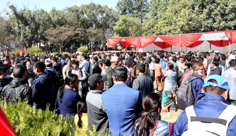 काठमाडौं ११ कार्तिक । सत्तारुढ दल नेपाल कम्युनिस्ट पार्टीले विजयादशमी, दीपावली तथा छठ पर्वको अवसर पारेर शनिबार राजधानीमा चियापान कार्यक्रम आयोजना गर्‍यो । काठमाडौँको भुकुटीमण्डस्थित बगैँचामा राखिएको चियापान स्थल साँघुरो भएकाले अस्तव्यस्त देखिएको थियो । उक्त स्थानमा प्रवेश गर्नका लागि कार्यकर्ताहरुले घण्टौँ लाइन बस्नुपरेको थियो ।