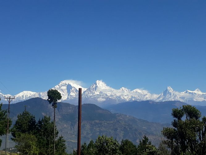 बिहानी पख घोडाबाँधेबाट देखिएको हिम श्रृङ्खला ।