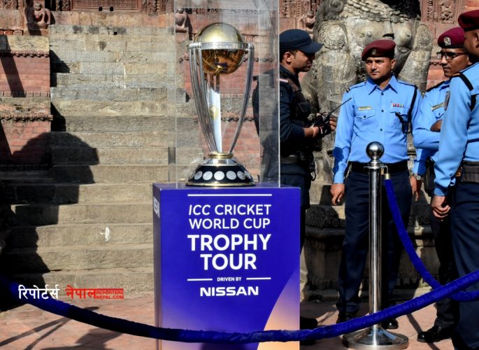 वसन्तपुरमा प्रदर्शनीमा राखिएको ट्रफी हेर्न सयौँ क्रिकेट प्रेमी र स्थानीयबासी जम्मा भएका थिए । अन्तर्रा्ष्ट्रिय क्रिकेट काउन्सिल (आईसीसी) विश्वकप ट्रफी नेपाल भ्रमणमा ल्याइएको यो पहिलो पटक हो।