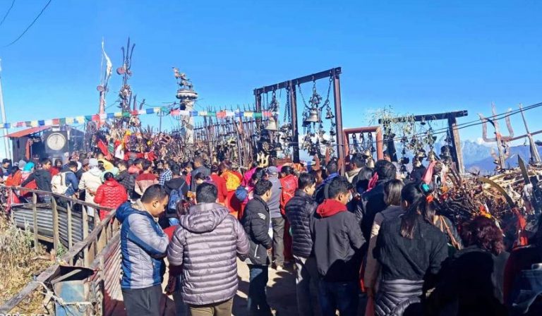 दोलखाको कालिन्चोक भगवती मन्दिरमा दर्शन गर्न पुगेका दर्शनार्थी ।