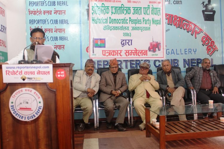 काठमाडौं, १० मंसिर । इतिहासिक प्रजातान्त्रिक जनता पार्टी नेपालले मुलुकमा पहाडी र मधेशी समूदायबीच एकता कायम गर्दै समान समानुपातिक समावेशितामूलक सिद्धान्तमा आधारित शासन सञ्चालन प्रणाली हुनुपर्ने माग गरेको छ ।