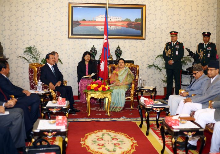 राष्ट्रपति भण्डारीसंग कम्बोडियाका प्रधानमन्त्रीको औपचारीक भेटवार्ता
