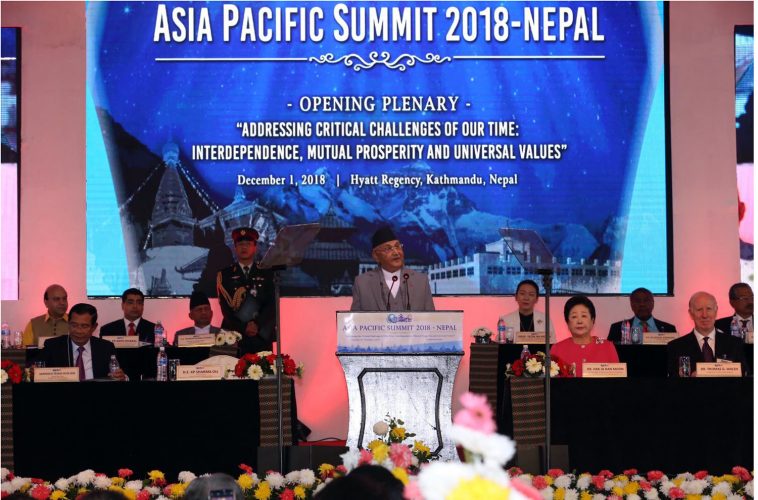एशिया प्रशान्त शिखर सम्मेलनलाई आज सम्बोधन गर्दै उहाँले नेपालजस्तो विविधतापूर्ण समाजमा वार्ता, समझदारी, आपसी सम्मान, सम्झौता र संलग्नताले भित्री र बाह्य द्वन्द्वलाई सफलतापूर्वक समाधान गर्न सकिन्छ भन्ने देखाएको स्पष्ट गर्नुभयो ।
