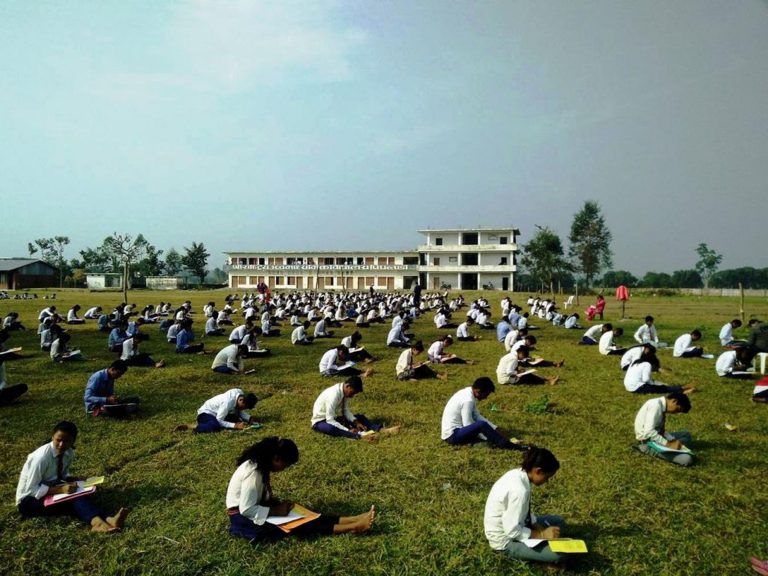 कञ्चनपुर, २० मंसिर । जिल्लाको शुक्लाफाँटा नगरपालिका–४ असैनामा रहेको राष्ट्रिय माध्यमिक विद्यालयका विद्यार्थी पारिलो घाम लागेको चौरमा बसेर परिक्षा दिदै । राजेन्द्रप्रसाद पनेरु, कञ्चनपुर, रासस