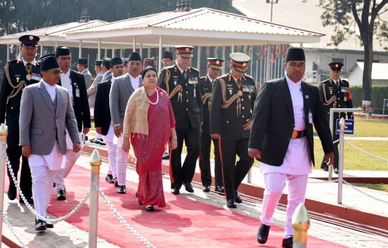 राष्ट्रपति भण्डारीलाई आज त्रिभुवन अन्तर्राष्ट्रिय विमानस्थलको अतिविशिष्ट कक्षमा उपराष्ट्रपति नन्दबहादुर पुन र प्रधानमन्त्री केपी शर्मा ओलीले स्वागत गर्नुभएको थियो । सो अवसरमा उपप्रधानमन्त्री, मन्त्रीहरु, उच्च सरकारी अधिकारी, सुरक्षा प्रमुखलगायत विमानस्थलको अतिविशिष्ट कक्षमा पुग्नुभएको थियो । राष्ट्रपति भण्डारीको सम्मानमा नेपाली सेनाको एक टुकडीले २१ तोपको सलामी अर्पण गरेको थियो ।