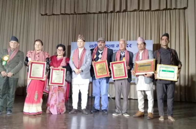 काठमाडौ, २२ मंसिर । लोक कला, साहित्य, संस्कृति र लोक परम्पराको जगेर्नागर्ने उदेश्यले सञ्चालनमा आएको नवीन कला मन्दिरले आफ्नो ६२औं बार्षिकोत्सव सम्पन्न गरेको छ । काठमाडौं महानगरपालिकाका प्रमुख बिधासुन्दर शाक्यको प्रमुख आतिथ्यता सम्पन्न नवीन कला सम्मान एबम सांंस्कृतिक कार्यक्रम २०७५ का अवसरमा विभन्न विदाका कलाकर्मीहरुलाई सम्मान गरिएको थियो ।