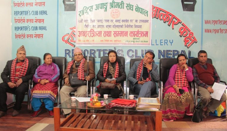 कार्यक्रममा प्रा.डा.गोविन्द आचार्य, सिता सुवेदी, सुनिता महर्जन, रमेशबाबु तिवारीलगायतले महिला हिँसा र अपाङ्गता भएका महिलाहरुको बारेमा सरकारलाई गम्भिर हुन आग्रह गरेका छन् । साँस्कृतिक प्रस्तुतीहरुसहितको कार्यक्रममा सुदिप सिंखडा डा.गोविन्द आचार्य, गोविन्द सिंखडा, रमेशबाबु तिवारी, राजु सिंखडालाई सम्मान गरिएको थियो ।