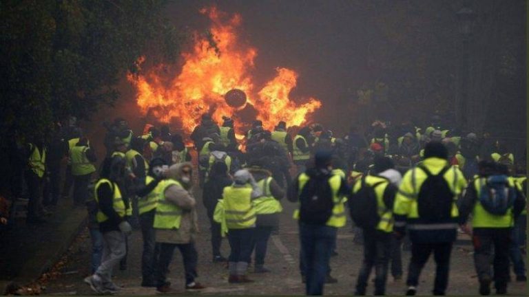 काठमाडौँ,२३ मंसिर । फ्रान्समा राष्ट्रपति म्यानुअल माँक्रोको राजीनामाको माग गर्दै हिंसात्मक प्रदर्शनमा उत्रिएका पहेँलो टिसर्टधारीमध्ये एकहजार ७२३ जनालाई प्रहरीले पक्राउ गरेको छ ।