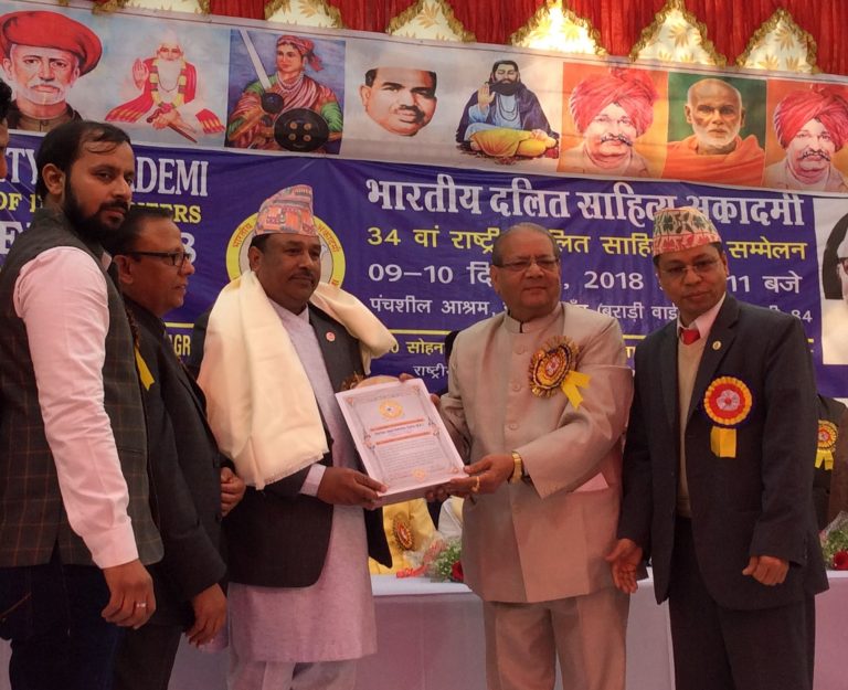 दलित तथा पछाडि पारिएको वर्गको उत्थान, विकासका र अधिकारका लागि गरेको योगदानको सम्मान गर्दै भारतीय दलित साहित्य एकेडेमीले भारतको राजधानी नयाँदिल्लीमा आयोजित एक समारोहबीच मन्त्री विश्वकर्मालाई आइतबार सो सम्मान प्रदान गरेको मन्त्री विश्वकर्माका स्वकीय सचिव सुशील विकेले जानकारी बताए ।