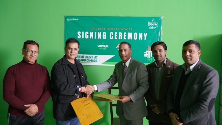 काठमाण्डौ,२७ मंसिर । नेपालको एक अग्रणी सिमेन्ट उत्पादक कम्पनी शिवम् सिमेन्ट लिमिटेड र मह सञ्चारका विचमा मह सञ्चार समुहले निर्माण गर्न लागेको नेपाली कथानक चलचित्र “दाल भात तरकारी”का लागि आर्थिक तथा प्रर्वद्धनात्मक क्षेत्रमा सहकार्य गर्ने प्रतिवद्धताका साथ आज सम्झैतापत्रमा हस्ताक्षर गरिएको छ ।