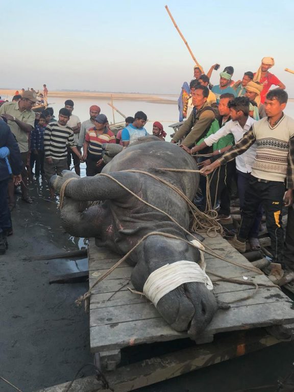 आइतबार दिउँसो २ः५० बजे उद्धार भएको गैँडालाई साँझ ठूलो डुङ्गामार्फत नारायणी तारेर नवलपरासीको त्रिवेणी ल्याइएको थियो । त्यसपछि ट्रकमा राखेर राति नै चितवन ल्याइएको हो । यसरी बाढीले बगाएका गैँडालाई डुङ्गामा तारेर ल्याइएको यो दोस्रो हो । झण्डै दुई हजार किलोको गैँडालाई डुङ्गामा तार्नु जोखिम भए पनि स्थानीयवासीको सहयोग र माझीको कुशलताले सफल भएको निकुञ्जले जनाएको छ ।