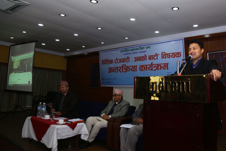 श्रम मन्त्रालयका सचिव महेशप्रसाद दाहालले आप्रवासन विश्वव्यापी प्रवृत्तिका रुपमा विकास हुँदै गइरहेकाले यसलाई व्यवस्थित बनाउनुको विकल्प नभएको बताउँदै “श्रम आप्रवासनका क्षेत्रमा देखिएका समस्या हल गर्दै व्यवस्थित बनाउन सरकारले कानून निर्माण र नीतिगत सुधारको पक्षमा कदम चाल्दै आएको छ”, भन्नुभयो ।उहाँले भन्नुभयो, गन्तव्य मुलुकसँग भएको श्रम समझदारीलाई द्विपक्षीय श्रम सम्झौतामा परिणत गर्ने तयारी भइरहेको छ ।”
