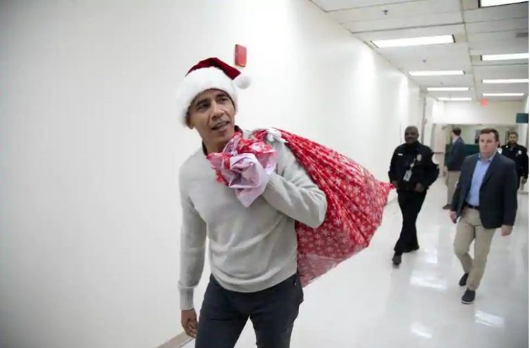 क्रिसमसमा लगाइने रातो टोपी लगाएर उपहारको थैलो नै बोकेर अस्पताल पुगेका उनले बालबालिकालाई ‘सर्पाइज’ नै दिएका थिए ।खेलौना लगायतका उपहार बोकेर ओबामा अस्पताल पुगेको अनौठो भिडियोबारे वासिङ्टन पोष्ट, हिन्दुस्तान टाईम्स लगाएतले समाचार नै बनाएका छन।