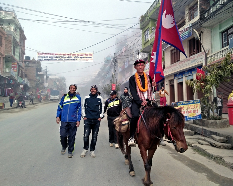 काठमाडौँ,५ पुस । दशौँ म्यान अफ द गोरखा दौडको उपाधि नेपाली सेनाका धावक गजेन्द्र राईले जित्नु भएको छ । ‘दशौँ गोरखा महोत्सव एवं अन्तरप्रदेश स्तरीय कृषि पर्यटन तथा व्यापार मेला–२०७५’ को अवसरमा आज आयोजना गरिएको प्रतियोगितामा ३६ प्रतिस्पर्धीलाई पछाडि पार्दै राईले उपाधि जित्नु भएको हो ।
