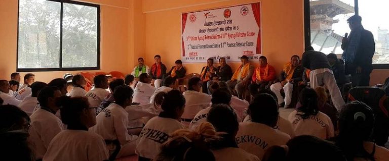 काठमाडौँ, १२ पुस । नेपाल तेक्वान्दो सङ्घ प्रदेश नं ३ को संयोजन तथा नेपाल तेक्वान्दो सङ्घको आयोजनामा नवौँ राष्ट्रिय ग्योरोगी रेफ्री सेमिनार तथा ग्योरोगी कोर्स आजदेखि सातदोबाटोस्थित तेक्वान्दो एकेडेमीमा शुरु भएको छ ।
