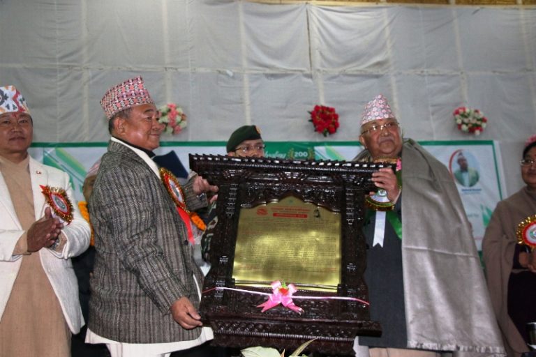 लगानी सम्मेलनको अवसरमा प्रधानमन्त्री केपी शर्मा ओलीलाई इलाम नगरपालिकाका तर्फबाट अभिनन्दित गरिएको छ । राष्ट्र निर्माण पु¥याएको योगदानको कदर गर्दै प्रधानमन्त्रीलाई नगरले अभिनन्दन गरेको हो । सामान्य परिवारमा हुर्किएरसमेत राष्ट्रका लागि लडेको र मुलुकको परिवर्तनको लागि जेल जीवनसमेत बिताउनु परेको भन्दै प्रधानमन्त्रीलाई अभिनन्दन गरिएको हो ।