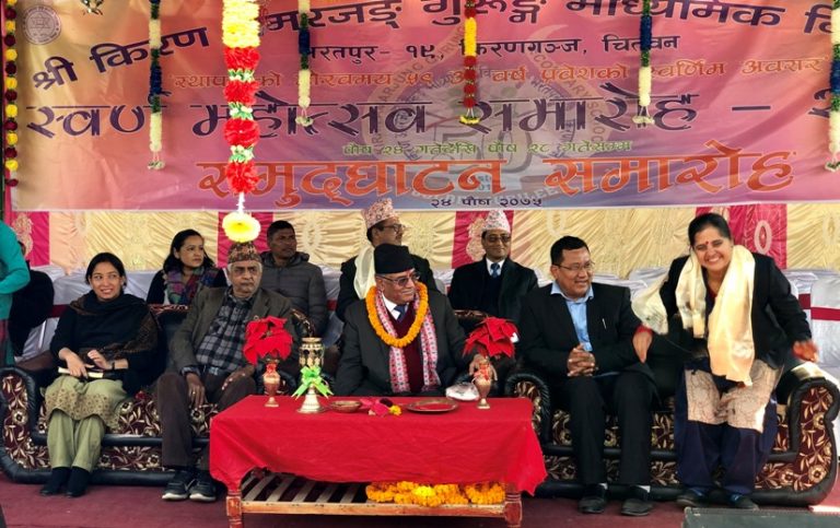 भरतपुर महानगरपालिका वडा नम्बर १९ किरणगञ्जस्थित श्री किरण अम्मरजंग गुरुङ माध्यमिक विद्यालयको स्वर्ण महोत्सव समुद्घाटन समारोहलाई सम्वोधन गर्दै उहाँले यस्तो बताउनु भएको हो ।