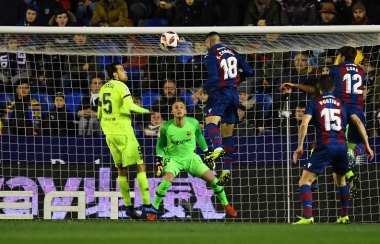 बार्साले खेलको चौंथो मिनेटमा नै गोल खाएर अपराजयको यात्रा गरेको थियो। इरिक काबाकोले हेडर गोल गर्दै लेभान्टेलाई अग्रता दिलाएका थिए। १८ औं मिनेटमा बोर्जा मायोरलले गोल गर्दै लेभान्टेले अग्रता दोब्बर पार्न सफल भएको थियो।