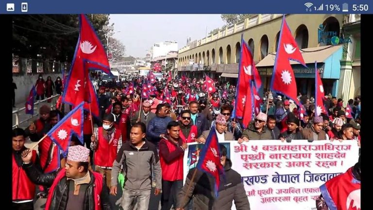 पृथ्वी जयन्तीको अवसरमा शाही युवा शक्ति नेपालले र्याली सहितको सभा गरको छ । गोंगबुबाट सुरु भएको र्याली पृथ्वी नारायण शाहको शालिक रहेका सिंहदरबारको पश्चिम ढोकामा पुगेर कोण सभामा परिणत भएको थियो । र्यालीमा सहभागीहरुले “राजा आउ देश बचाउ” र “हाम्रो राजा हाम्रो देश, प्राण भन्दा प्यारो छ” भन्दै नाराबजी गरेका थिए ।