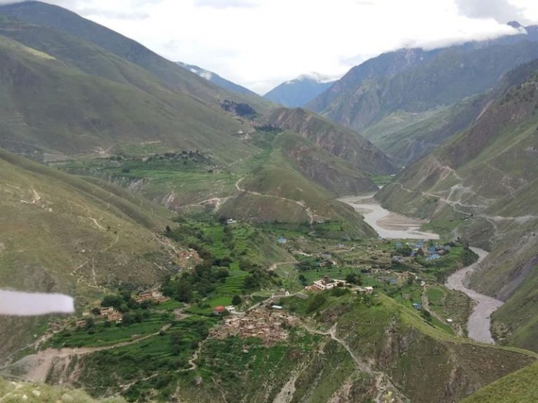 जाजरकोट – डोल्पा सडक खण्डको बीचमा पर्ने डोल्पाको त्रिपुरकोट नगरपालिकाको त्रिपुरासुन्दरी मन्दिर, त्रिपुरकोट गाउँलयातयको रमणीय बस्तीहरु । तल्लो डोल्पाको त्रिपुराकोट मुख्य व्यापारिक केन्द्रको रुपमा स्थापित छ । तस्वीर ः हेमन्त केसी, जाजरकोट त्रिवेणी ,रासस
