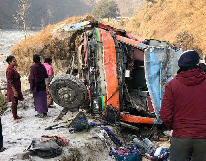 सो दुर्घटनामा परी मृत्यु हुनेमा म्याग्दी पाखापानी–१ बस्ने २१ वर्षीय राजेश पुन, पर्वत जलजला गाउँपालिका–८ बस्ने ४० वर्षीया सेती परियार, उनका पति ५० वर्षीय टिके परियार र बागलुङ नगरपालिका–४ की ४८ वर्षीया शान्ति केसीको सनाखत भएको पर्वत जिल्ला प्रहरी कार्यालय पर्वतले जनाएको छ । मृत्यु हुने अन्य दुई पुरुष र एक महिला सनाखत हुन बाँकी रहेको छ ।
