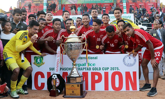 धनगढी, ५ माघ : ‘तेस्रो नेपाल आइस अन्तर्राष्ट्रिय सुदूरपश्चिम खप्तड गोल्ड कप–२०७५’को उपाधि नेपाल पुलिस क्लबले जितेको छ ।