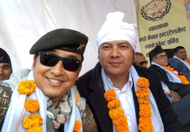 काठमाडौं, ६ माघ । नवलपरासीको डण्डामा आयोजित खिचरा महोत्सवमा राष्ट्रिय लोक तथा दोहोरी गीत प्रतिष्ठानका अध्यक्ष बद्री पंगेनी र लोकप्रिय गायक मिलन लामा । तस्विरः बद्री पंगेनीको फेशबुकबाट ।