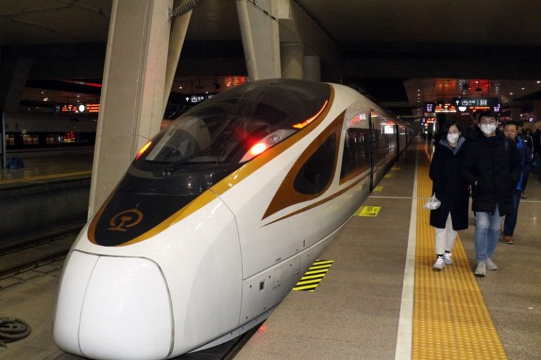 चीनको राजधानी बेइजिङभएर अन्य सहरमा चल्ने तीव्रगतिको रेल । यो रेल प्रतिघण्टा ३५० किलोमिटरसम्म गुड्ने गरिन्छ । तस्वीर ः रत्न श्रेष्ठ, रासस ।
