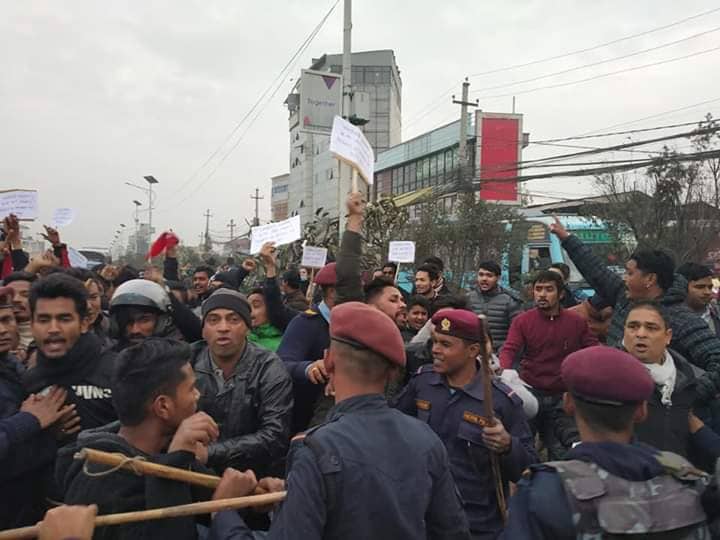 प्रर्दशनका क्रममा नेविसंघ कार्यकर्ताले केहि सरकारी गाडीमा तोडफोड गरेका छन् भने बानेश्व्र चोकमा टायर बाल्ने प्रयास गरेका थिए । प्रर्दशनका क्रममा प्रहरी र नेविसंघ कार्यकताबिच झडप समेत भएको थियो ।
