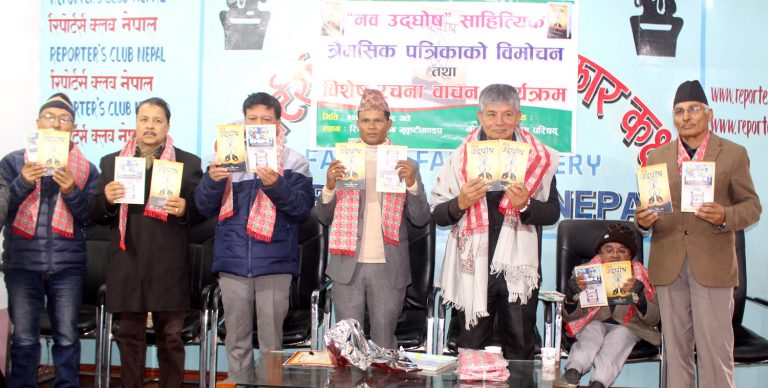 काठमाडौँ, ९ माघ । गोलढुङगा साहित्य परिषद् काठमाडौँद्धारा प्रकाशित ‘नव उद्घोष’ साहित्यिक त्रैमासिक पत्रिकाको ७ औ वर्षको पहिलो अंक विमोचन भएको छ ।