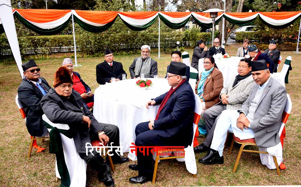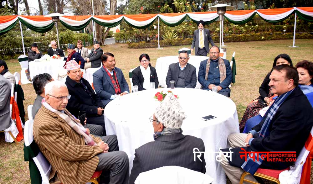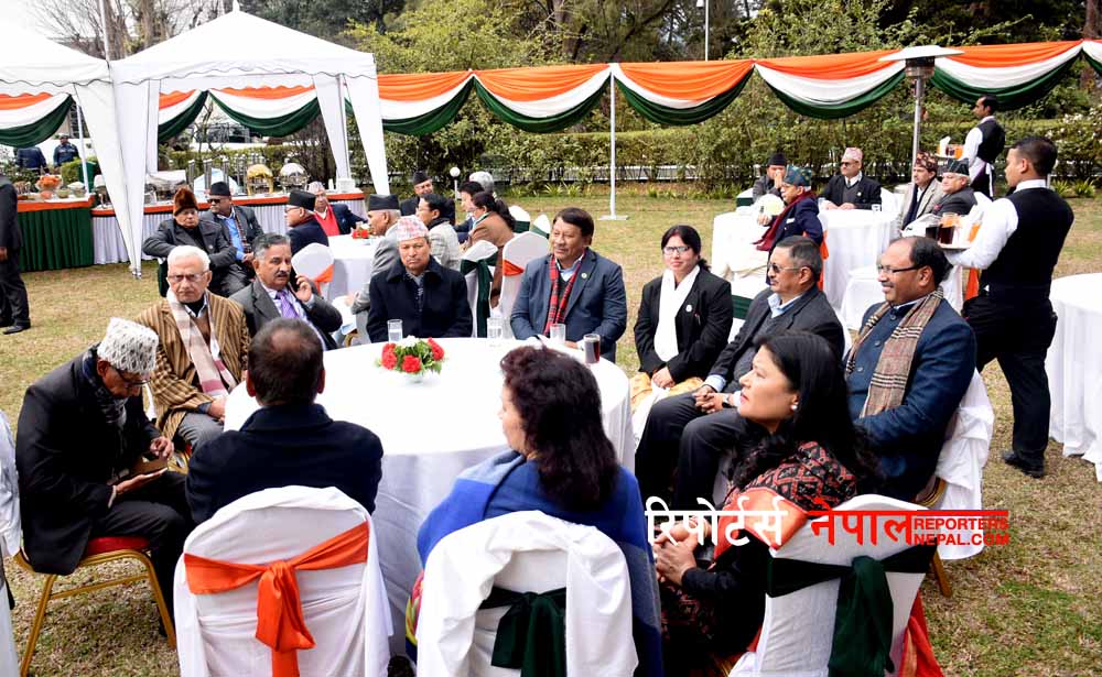 नेपालका लागि भारतका राजदूत मञ्जिभसिंह परीले आयोजना गरेको उक्त समारोहमा मन्त्रिपरिषद्का सदस्य, संवैधानिक अङ्गका प्रमुख, पूर्वप्रधानमन्त्री, पूर्व सभामुख, पूर्वमन्त्री, यहाँस्थित कूटनीतिक नियोगका प्रमुख तथा पदाधिकारी, उद्योगपति, व्यापारी, कलाकार, साहित्यकार, प्राज्ञ, कामका सिलसिलामा राजधानीमा रहेका भारतीय नागरिक तथा वरिष्ठ सञ्चारकर्मीको उपस्थिति थियो ।