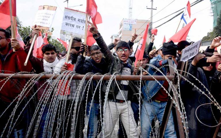 काठमाडौँ,१३ माघ । काङग्रेस सर्मथक महिलासंघ र नेविसंघले सयुक्त रुपमा आयोेजना गरेको बिरोध प्रर्दशनमा प्रहरी र प्रर्दशनकारीबिच बानेश्वर चोकमा झडप भएको छ ।