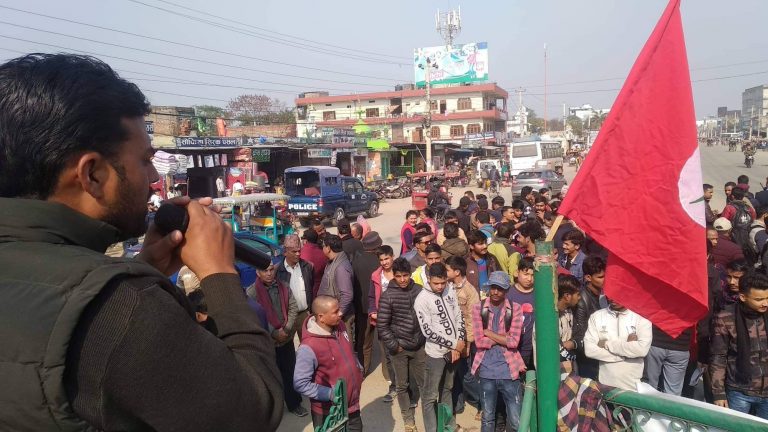 नेपालगञ्ज, माघ १४ । नेपाल विद्यार्थी संघको संयाजनमा आज नेपालगञ्जमा सरकारका विरुद्ध खबरदारी सभा गरिएको छ । विपी चोकमा गरिएको खबरदारी सभामा बोल्ने बक्ताहरुले सरकार दुई तिहाईको दम्भ पालेर अधिनायकबादी शैलीमा अघि बढेको भन्दै रोष प्रकट गरेका थिए ।