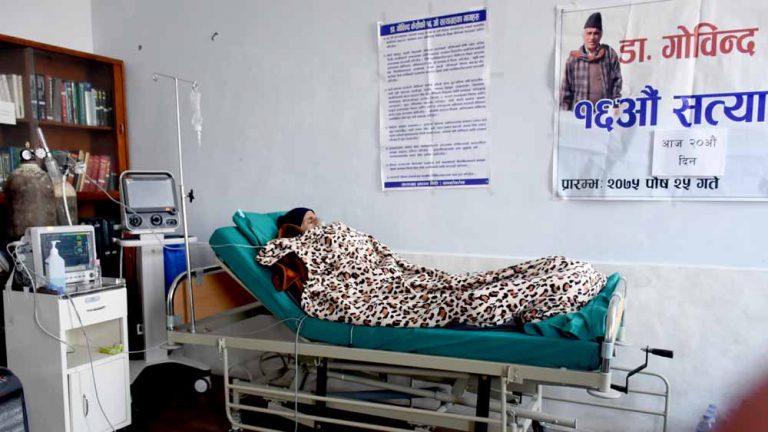 गत पुस २६ गतेदेखि डा केसी सोह्राँै पटक आमरण अनशनमा हुनुहुन्छ । उहाँको स्वास्थ्यस्थिति दिनप्रतिदिन कमजोर हुँदै गएको छ । केसीको विरोधमा अनशनरत विजय थापाको स्वास्थ्यस्थिति पनि कमजोर भएको जनाइएको छ ।