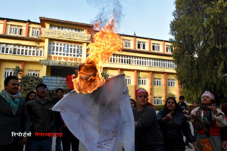 नेविसंघका विद्यार्थीहरुद्धारा प्रधानमन्त्रीको पुत्ला दहन -हेर्नुस् भिडियो