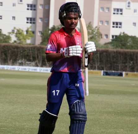 ओपनिङ व्याट्सम्यान प्रदिप ऐरि पहिलो बलमा आउट भए भने अर्का व्याट्सम्यान तथा उपकप्तान ज्ञानेन्द्र मल्लले पनि १० बलबाट ७ रनमात्रै जोडेर आउट भए । त्यसैगरी दिपेन्द्रसिंह ऐरीले पनि २ बल खेलर चार रन मात्रै जोडे । राहुल पौडेलले पनि ४ रन मात्रै जोडे ।