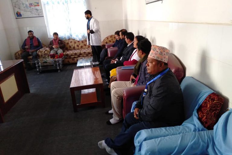 मन्त्री बराललाई अस्पतालको स्थितिबारे जानकारी गराउँदै निमित्त प्रमुख मेडिकल सुपरिटेण्डेन्ट डा सर्वेश शर्माले विशेषज्ञ चिकित्सकको अभावमा सेवाप्रवाहमा समस्या भएको बताउनुभयो ।