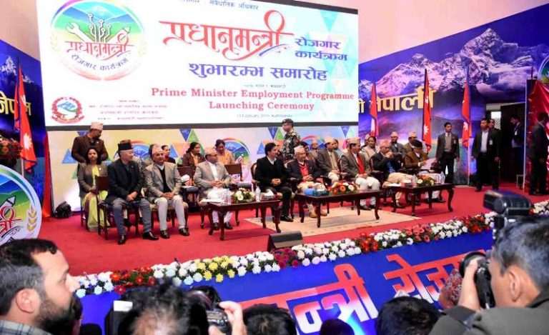 काठमाडौँ,१ फागुन । सरकारले आज देखि ‘प्रधानमन्त्री रोजगार कार्यक्रम’को लागू गरेको छ।प्रधानमन्त्री केपी शर्मा ओलीले राजधानीको नेपाल प्रज्ञा प्रतिष्ठान कमलादीमा कार्यक्रमको उद्घाटन गरेका छन।