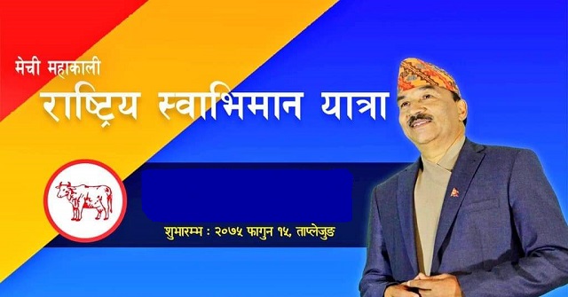 यसैबीच कमल थापा नेतृत्वको राप्रपाले हिन्दू राष्ट्र, राष्ट्रिय अखण्डताको रक्षालगायत उद्देश्यले यही फागुन १५ गते ताप्लेजुङदेखि मेची–महाकाली राष्ट्रिय स्वाभिमान यात्रा शुरु गर्ने भएको छ । ताप्लेजुङबाट पाँचथर, इलाम, झापासहित तराईका २२ जिल्ला र देशका विभिन्न भाग हुँदै सुदूरपश्चिमको कञ्चनपुर पुग्ने छ । यसपछि कञ्चनपुरबाट सो यात्रा बुटवल पाल्पा, स्याङ्जा, कास्की हुँदै आगामी फागुन २९ गते उपत्यका प्रवेश गर्ने र ३० गते विशालसभा गरी समापन गर्ने छ ।