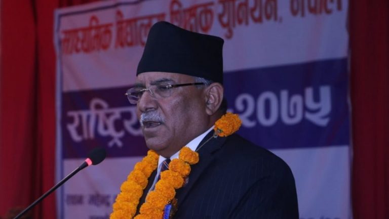 काठमाडौं, ३ फागुन । नेपाल कम्युनिष्ट पार्टीका अध्यक्ष तथा पूर्व प्रधानमन्त्री पुष्पकमल दाहाल प्रचण्डले इतिहासले अहिलेको नेतृत्वलाई अग्नि परिक्षामा लिएको बताउनु भएको छ । उहाँले नेपाल शिक्षक माध्यमिक विद्यालय शिक्षक युनियन, नेपालको राष्ट्रिय भेलालाई शुक्रबार सम्बोधन गर्दै अध्यक्ष प्रचण्डले यस्तो बताउनु भएको हो ।