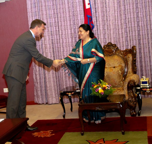 काठमाडौँ, १० फागुन । राष्ट्रपति विद्यादेवी भण्डारीसँग संयुक्त अधिराज्यका रक्षा राज्यमन्त्री मार्क ल्याङ्केष्टरले आज अपराह्न राष्ट्रपति कार्यालय शीतल निवासमा शिष्टाचार भेट गर्नुभएको छ ।