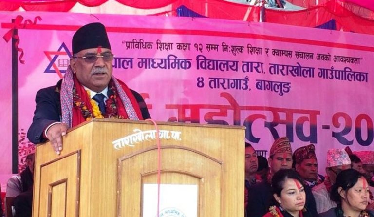 बाग्लुङ, ११ फागुन । पूर्वप्रधानमन्त्री तथा नेपाल कम्युनिष्ट पार्टी (नेकपा) का अध्यक्ष पुष्पकमल दाहाल ‘प्रचण्ड’ ले देशमा समृद्धि नआएसम्म शहीदको सपना पूरा नहुने बताउनुभएको छ । उहाँले भन्नुभयो, ‘अहिलेको सरकारले समृद्धिका लागि आवश्यक पर्ने सबै कानून निर्माण गरेको हो ।