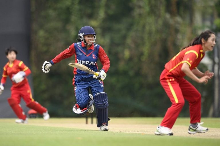 काठमाडौँ, १३ फागुन । नेपालले चीनलार्ई पराजित गर्दै आइसीसी महिला विश्वकप क्रिकेट प्रतियोगिताअन्तर्गत एशिया छनोटमा चौथोे जित दर्ता गराएको छ ।