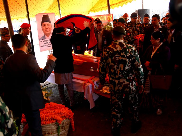 काठमाडौँ, १७ फागुन । प्रधानमन्त्री केपी शर्मा ओलीले संस्कृति, पर्यटन तथा नागरिक उड्डयनमन्त्री रवीन्द्र अधिकारीसहित सातै जनाको पार्थिव शरीरमा श्रद्धाञ्जलि अर्पण गर्नुभएको छ ।