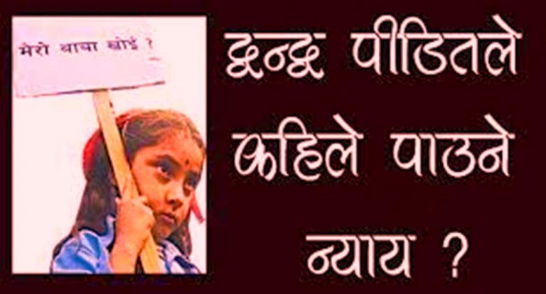 काठमाडौँ, १७ फागुन। द्वन्द्वपीडित साझा चौतारीले सङ्क्रमणकालीन न्यायको प्रक्रियामा द्वन्द्वपीडितलाई सहभागी गराउन आग्रह गरेको छ । चौतारीको यही फागुन १४, १५ र १६ गतेको विस्तारित बैठकले सङ्क्रमणकालीन न्याय प्रक्रियाको कार्यतालिका, विद्यमान कानूनको संशोधन, परिपूरणलगायतका नीति र आयोगको पुनःसंरचनामा द्वन्द्वपीडितलाई सहभागी गराउन आग्रह गरेको हो ।
