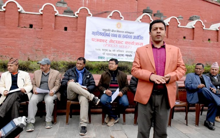 काठमाडौं, १८ फागुन । पशुपति क्षेत्र विकास कोषले महाशिवरात्रीको सम्पुर्ण तयारी पूरा भएको जनाएको छ । कोषले आज (शनिबार) पशुपति परिसरमा पत्रकार सम्मेलन गरि तयारी पुरा भएको जानकारी गराएको हो । महाशिवरात्रि पर्वलाई व्यवस्थित गठित विभिन्न उपसमितिले आ-आफ्नो कार्यसम्पादन पुरा गरेको कोषले स्पष्ट पारेको छ ।