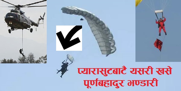 त्यस्तै उपप्रधानमन्त्री, मन्त्रीगण, नेपाल सरकारका उच्चपदस्थ अधिकारी, सुरक्षा निकायका प्रमुख, नेपालस्थित कूटनीतिक नियोगका प्रमुख लगाएतको पनि सो अवसरमा उपस्थिति थियो । नेपाली सेनाले २०४७ सालदेखि महाशिवरात्रिको दिनलाई सेना दिवसका रुपमा मनाउँदै आएको छ । यसैबीच जङ्गीअड्डामा नेपाली सेना दिवसको अवसरमा आयोजित समारोहमा देखाइएको प्रदर्शनका क्रममा दुर्घटना भएको छ । प्यारासुटको माध्यमबाट फ्रिफल जम्प देखाउने दुर्घटना भएको हो । दुर्घटनामा सेनाका पूर्णबहादुर भण्डारी घाइते भएका हुन् ।