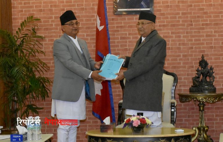 काठमाडौं, २० फागुन। प्रधानमन्त्री एवं राष्ट्रिय सुरक्षा परिषदका अध्यक्ष केपी शर्मा ओलीसमक्ष राष्ट्रिय सुरक्षा नीति परिमार्जन उच्चस्तरीय समितिले सोमबार आफ्नो प्रतिवेदन हस्तान्तरण गरेको छ ।
