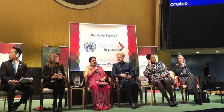 महिलाको स्थितिसम्बन्धी संयुक्त राष्ट्रसङ्घीय आयोगको ६३ औँ अधिवेशनका अवसरमा राष्ट्र सङ्घका महासभाका अध्यक्ष मारिया फर्नान्डा एस्पिनोसा गार्सेसले न्यूयोर्कस्थित महासभा कक्षमा आयोजना गर्नुभएको ‘शक्तिमा महिला’ मूल विषयअन्तर्गत उच्चस्तरीय एक सत्रमा भाग लिँदै राष्ट्रपति भण्डारीले महिलाप्रति विभेद समाजले बनाएकाले यो अप्राकृतिक भेदभाव भएको र अपरिवर्तनीय नभएको स्पष्ट गर्नुभयो ।