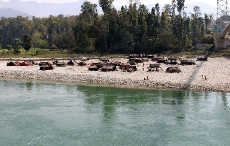 सुर्खेतको लेकबेसी नगरपालिका–१ भेरी नदी किनारमा राउटे बस्ती । तस्बिर ः हिक्मतबहादुर नेपाली, दैलेख, रासस